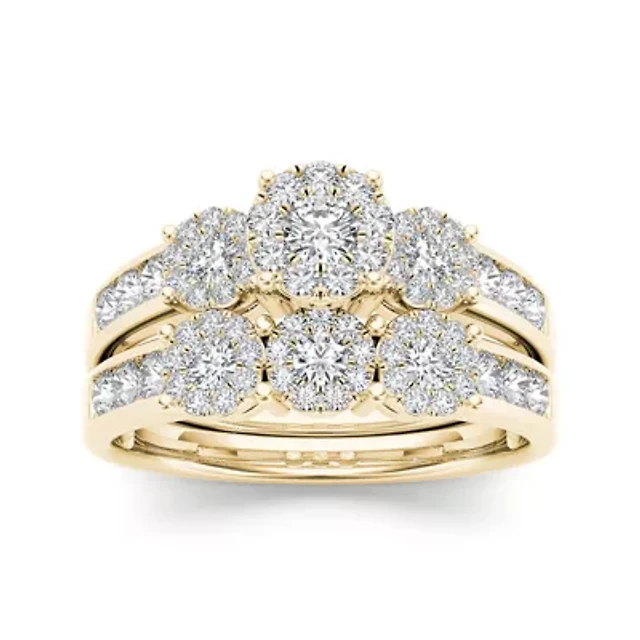 1 CT.T.W. Natural Diamond 10K Yellow Gold Halo Bridal Ring Set