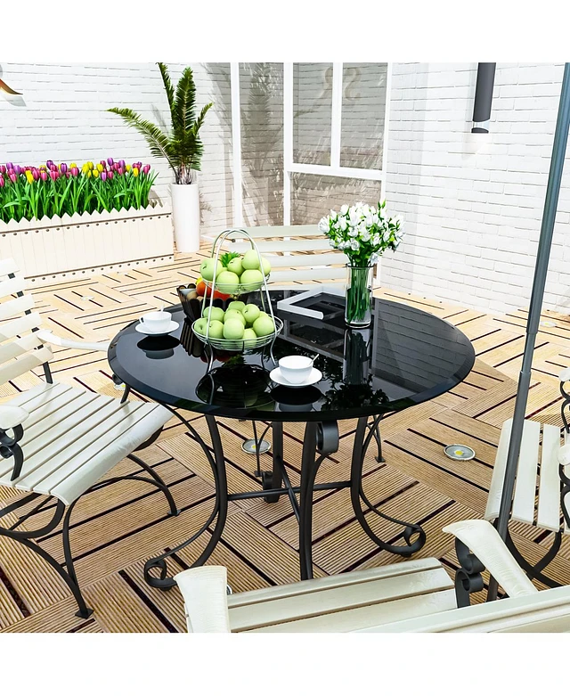 Costway 32''Outdoor Patio Round Table Tempered Glass Top