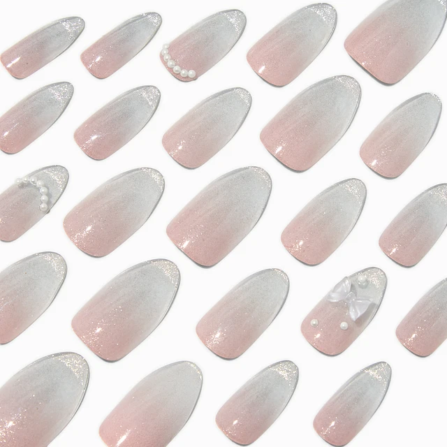 3D Bow & Glitter Stiletto Vegan Faux Nail Set - 24 Pack