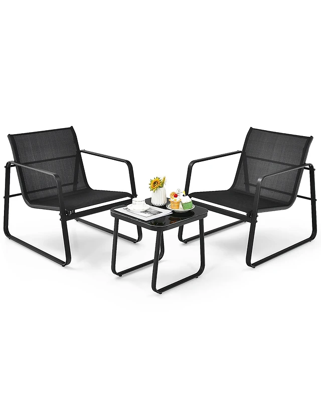 3 Pieces Patio Conversation Set Outdoor Metal Chair & Table Tempered Glass Top