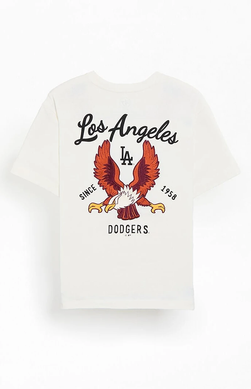 The LA Dodgers Souvenir T-Shirt from 47 Brand delivers a classic, game-day inspired look with a vintage feel. It features short sleeves, a crew neckline, an LA Dodgers left chest graphic, and an eagle back embroidery for a bold, standout finish.