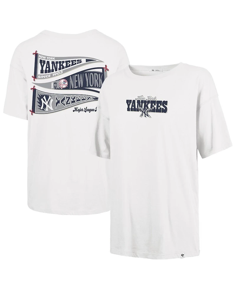 Only a true fan knows that the '47 Brand Bow Banner Sadie T-Shirt is a must-have for showing your New York Yankees pride. This premium tee features a screen-printed bow and wordmark on the front, plus eye-catching banners on the back, making it a stylish way to support your team. Crafted from cotton, this '47 Brand shirt offers a soft-touch feel and comfortable fit that's perfect for game day or everyday wear.