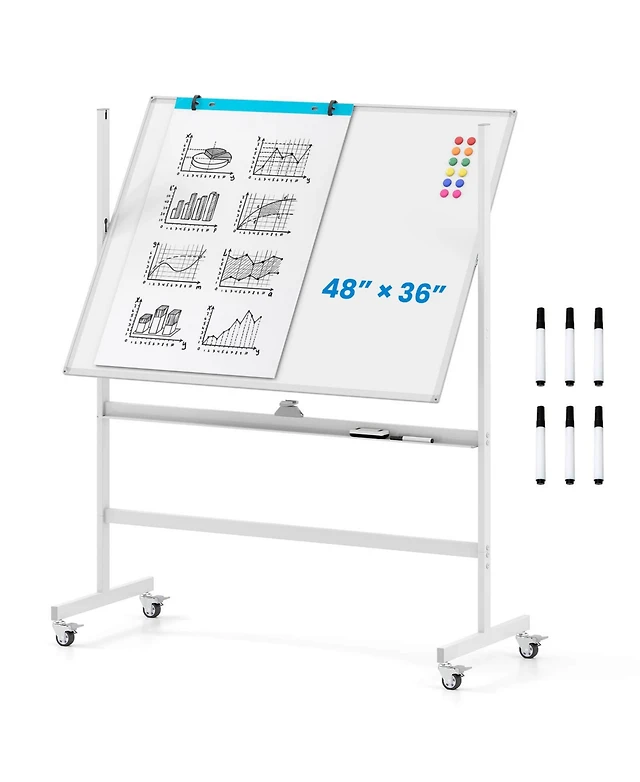 Vebreda 48 x 36 Inch Mobile Magnetic Double-Sided Reversible Whiteboard Height Adjust