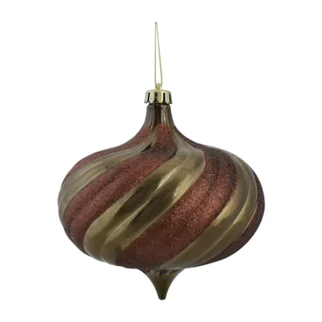 4ct Mocha Brown Swirl Shatterproof 2-Finish Onion Drop Christmas Ornaments 5.75'' (150mm)
