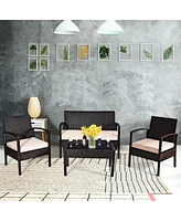 4PCS Patio Rattan Conversation Furniture Set Cushioned Seat