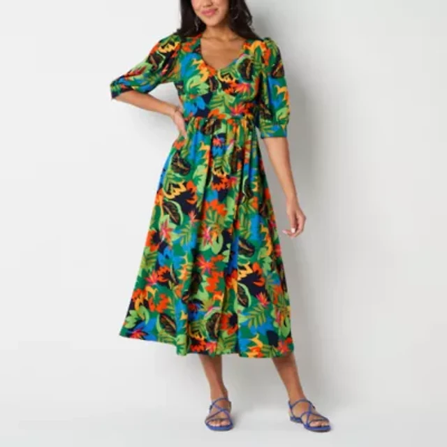 52seven Womens Elbow Sleeve Floral Maxi Dress