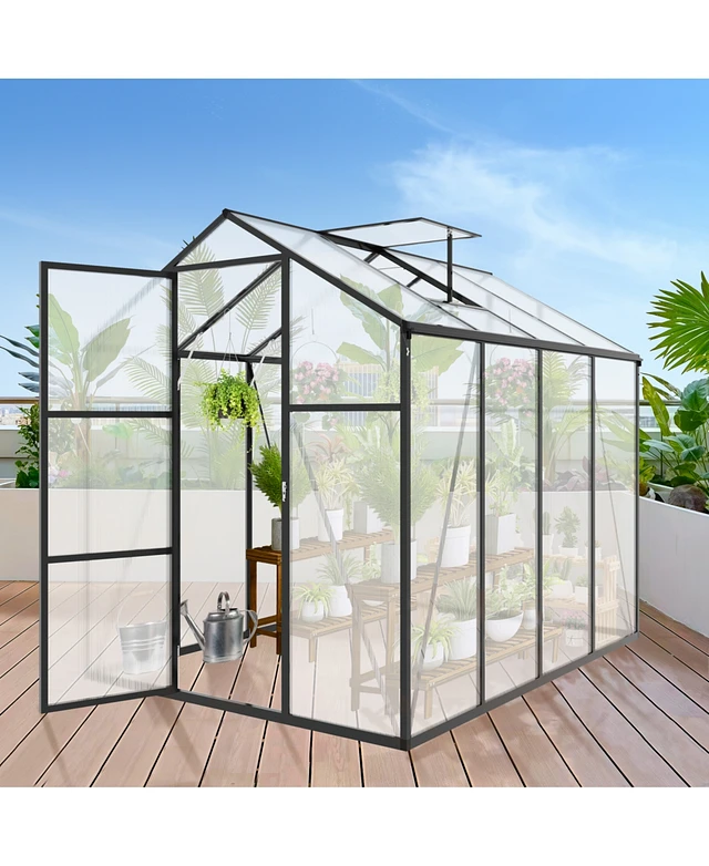 6x8 Ft Aluminum Polycarbonate Greenhouse, Windproof, Heavy Duty
