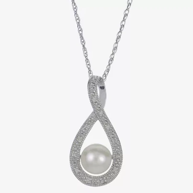 Womens Diamond Accent Cultured Freshwater Pearl Sterling Silver 18 Inch Pendant Necklace