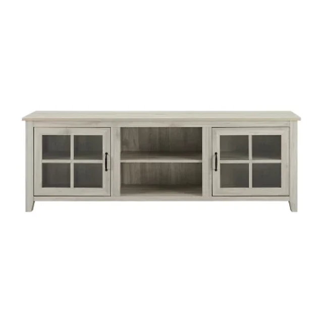 70-Inch TV Console with Glass and Wood 4 Panel Doors