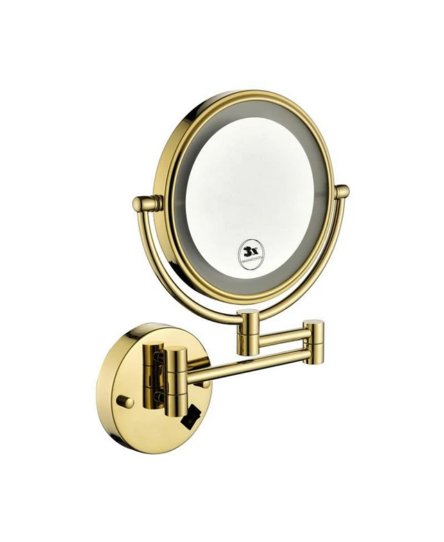 8 Inch Led Wall Mount Two-Sided Magnifying Makeup Vanity Mirror 12 Inch Extension Gold Finish