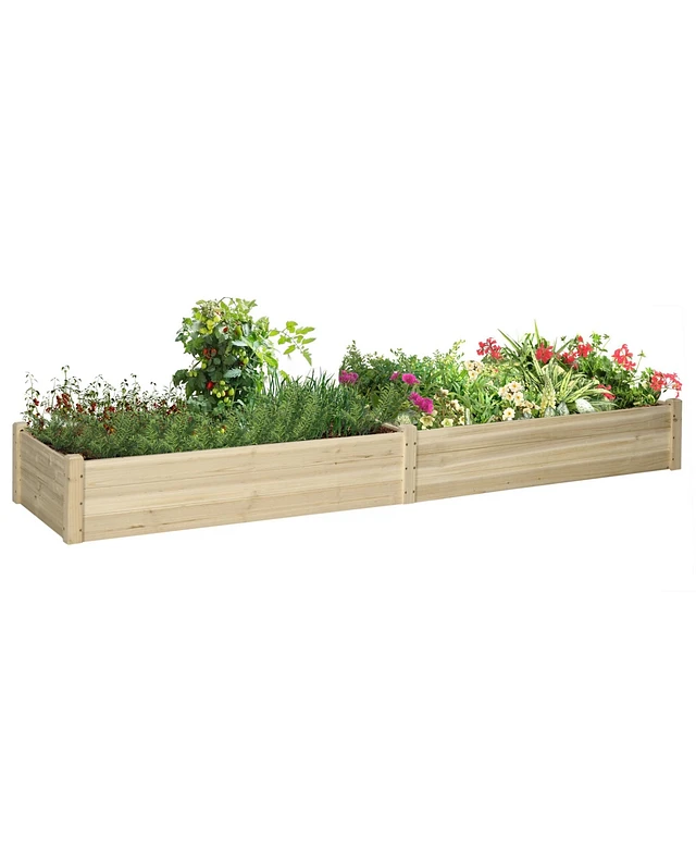 8x2ft Wooden Raised Garden Bed Kit, Elevated Planter with 2 Boxes, Self Draining Bottom and Liner, Patio to Grow Vegetables, Herbs, and Flowers, Natur
