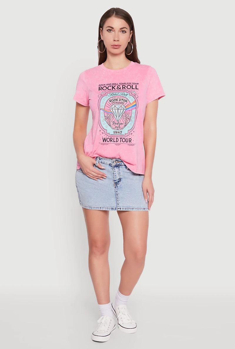 Acid Wash Graphic Rock and Roll Fearless Tour T-Shirt