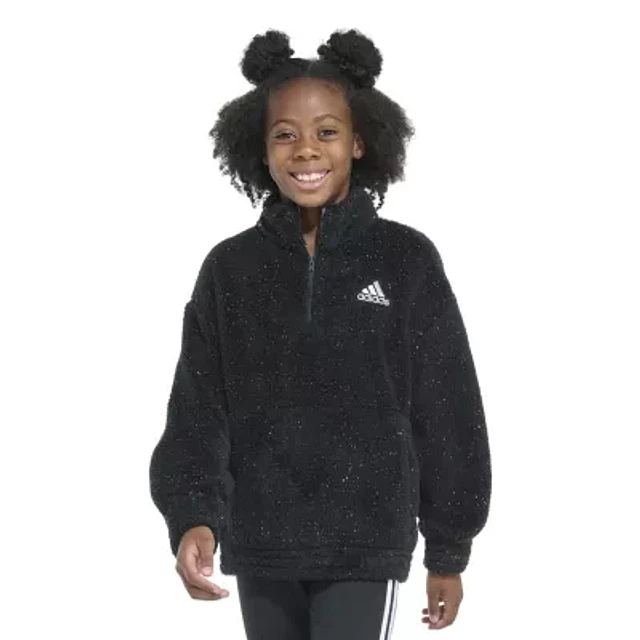 Adidas Big Girls S-xl Long Sleeve Mock Neck Lurex Sherpa Pullover Hoodie