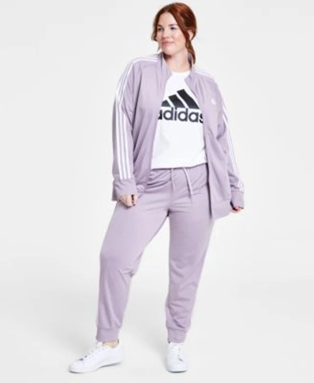 Adidas Plus Size Logo Cotton T Shirt Tricot Track Jacket Warm Up 3 Stripes Track Pants