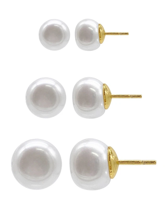 Adornia 14K Gold Plated Freshwater Pearl Stud Earrings Set, 6 Pieces