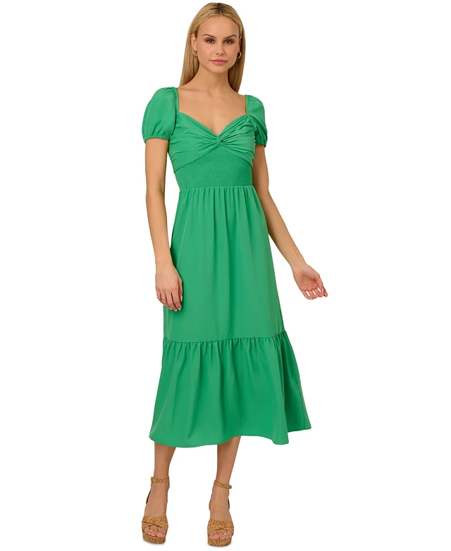 Adrianna by Papell Women's Twist-Front Puff-Sleeve Midi Dress