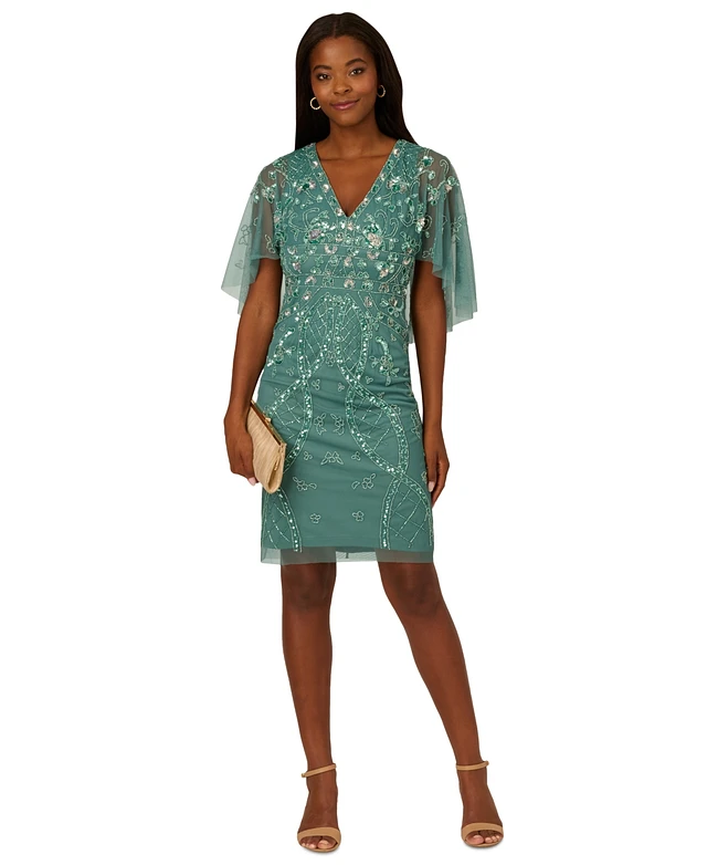 Adrianna Papell Women's Beaded Cape-Sleeve Sheath Dress