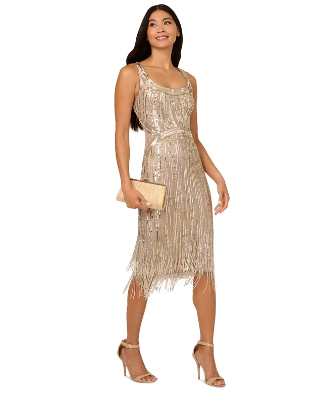 Adrianna Papell Women's Beaded Fringe Sheath Dress