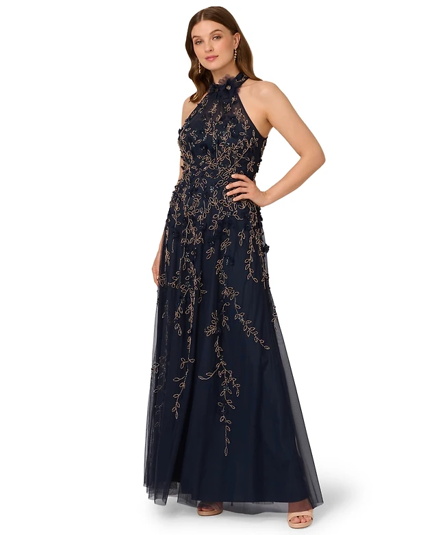 Adrianna Papell Women's Beaded Petal Ball Gown