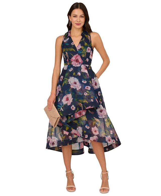 Adrianna Papell Women's Floral High-Low Organza Dress