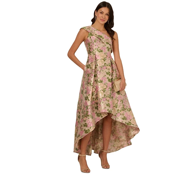Adrianna Papell Women's Jacquard High-Low One-Shoulder Gown