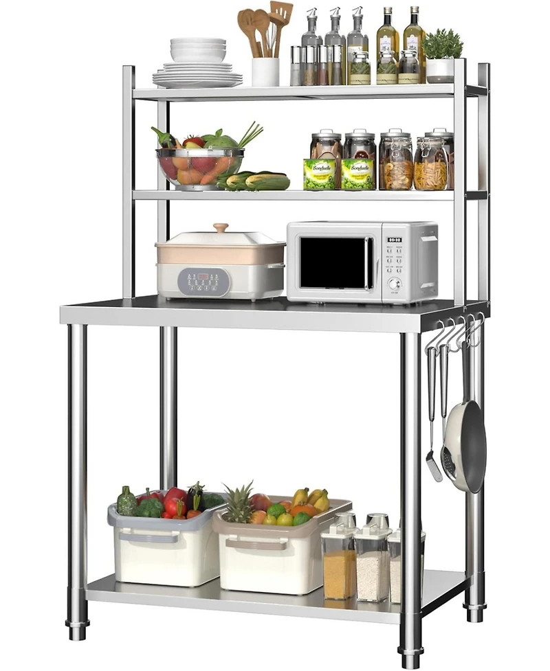Built for versatility, the stainless steel work table is perfect for commercial kitchens, hospitals, garages, warehouses, and laundry rooms-functioning as a prep table, utility table, or heavy-duty workbench. With a total load capacity of 1100 lbs, it features a sturdy undershelf and 2-tier overshelves, plus adjustable feet for leveling on uneven floors. Crafted from heavy-duty galvanized steel, it resists bending, warping, and rust under intense daily use. The 100% stainless steel surface is rust-proof, waterproof, and scratch-resistant-simply wipe clean for effortless maintenance. Assembly is quick with included instructions and hardware, backed by responsive support for complete peace of mind.