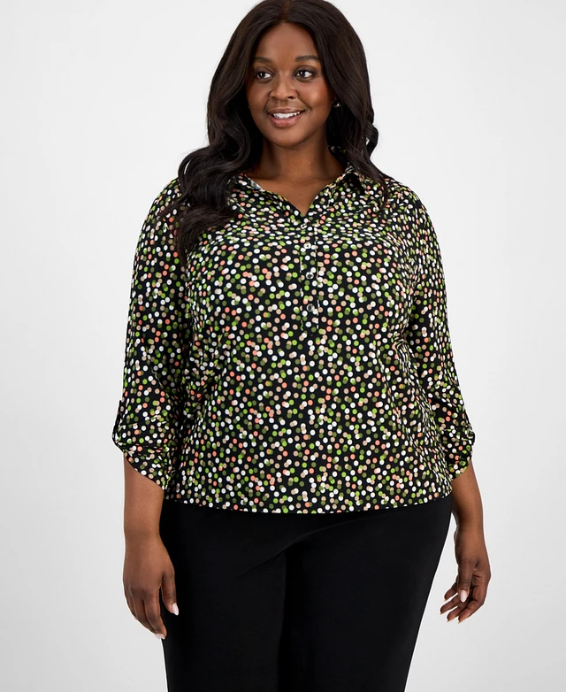 Ak Anne Klein Plus Printed Roll-Tab Shirt