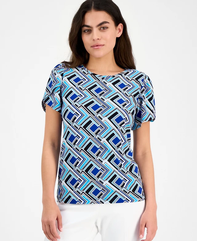 Ak Anne Klein Women's Printed Tulip-Sleeve Top