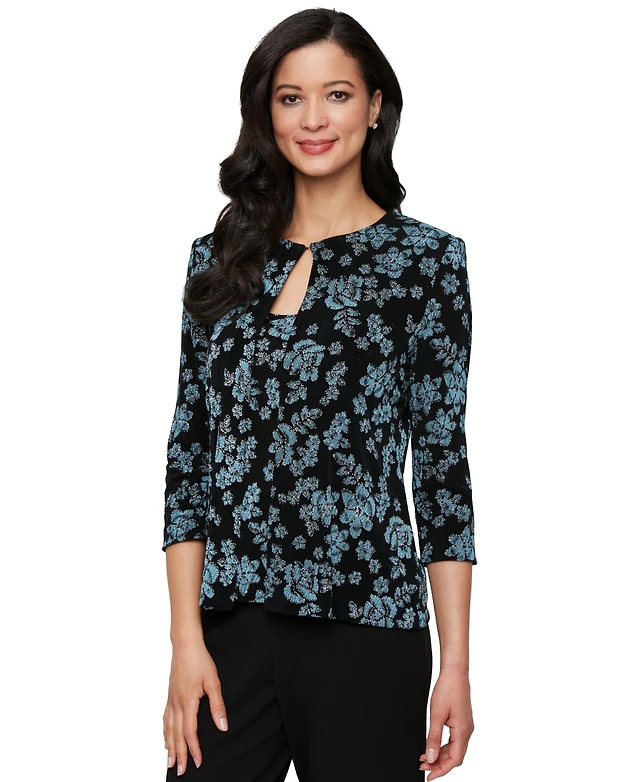 Alex Evenings Plus Size 3/4-Sleeve Chiffon Top