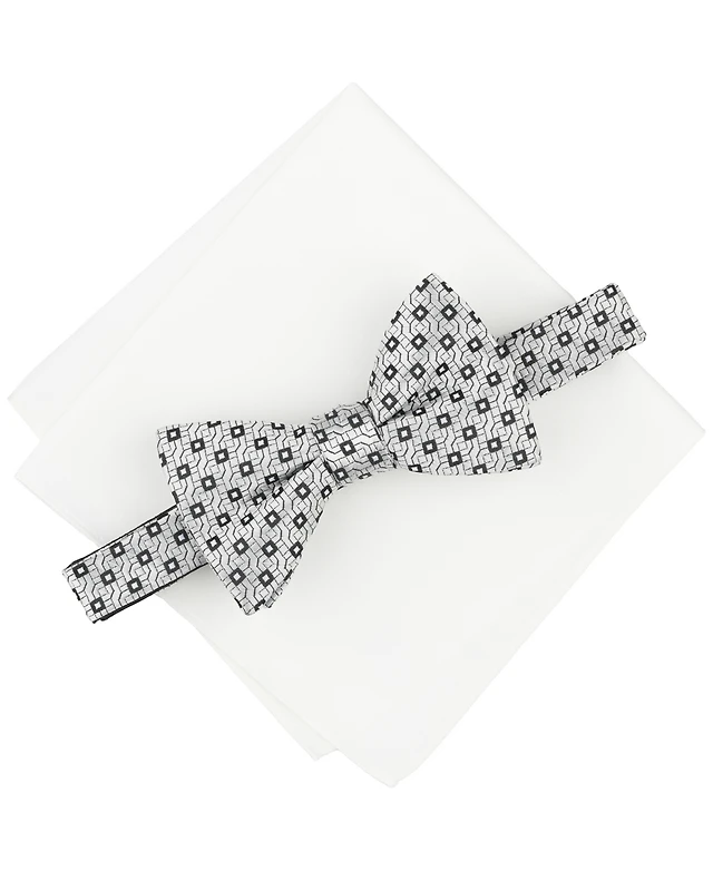 Alfani Men's Geo-Pattern Bow Tie & Solid Pocket Square Set