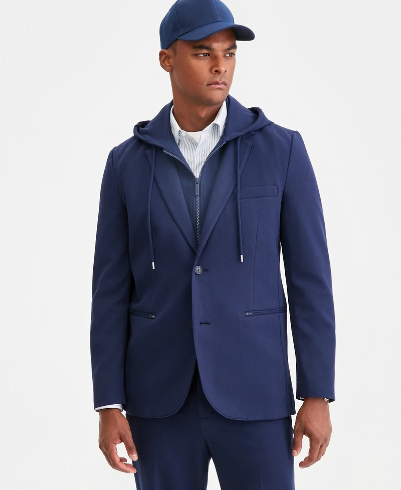 Suiting polish meets athleisure flair in this fresh look from Alfani, a textured knit blazer updated with a hood.