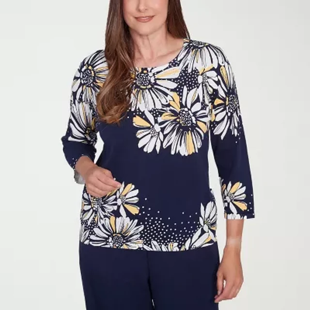Alfred Dunner Womens Crew Neck 3/4 Sleeve Blouse