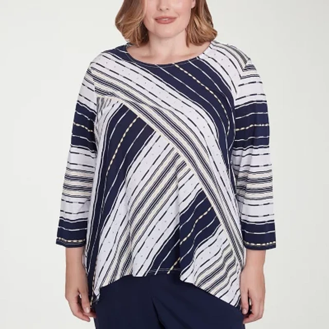 Alfred Dunner Nantucket Womens Crew Neck 3/4 Sleeve Plus T-Shirt