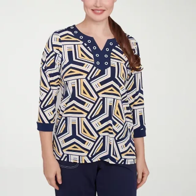 Alfred Dunner Block Island Womens Crew Neck 3/4 Sleeve T-Shirt