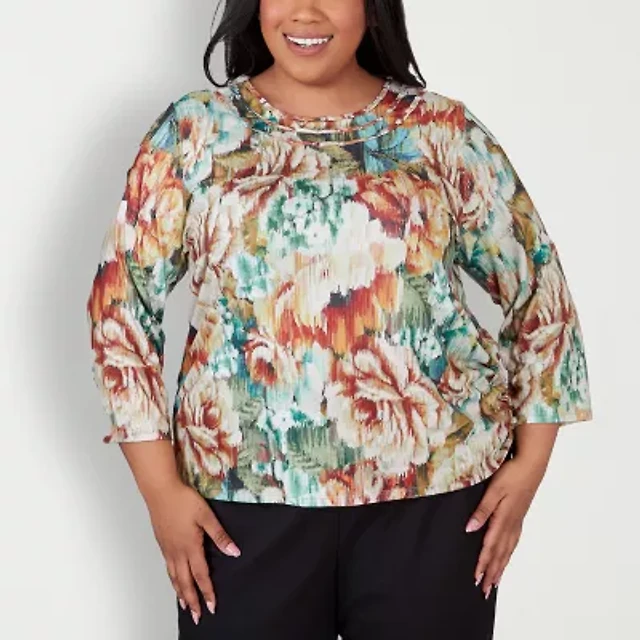 Alfred Dunner St Thomas Womens Plus Crew Neck 3/4 Sleeve Blouse