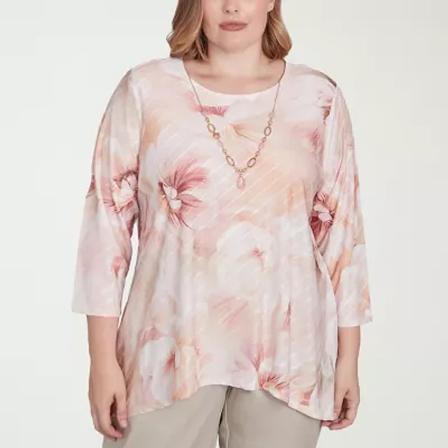 Alfred Dunner Coming Up Roses Womens Plus Crew Neck 3/4 Sleeve T-Shirt