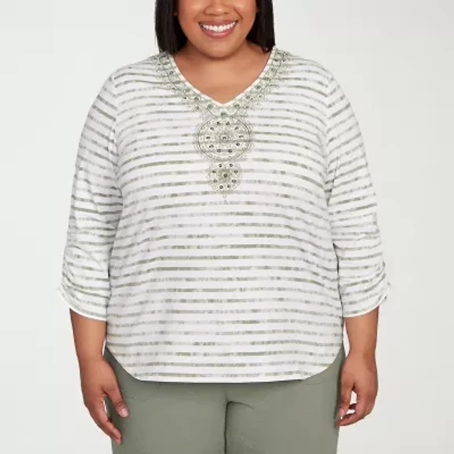 Alfred Dunner Classics Womens Plus 3/4 Sleeve T-Shirt