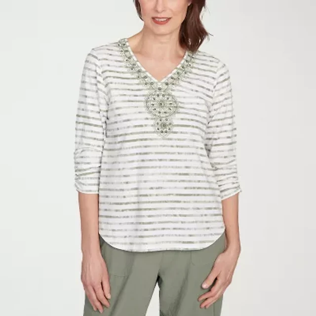 Alfred Dunner Catalina Island Womens Crew Neck 3/4 Sleeve T-Shirt