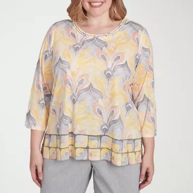 Alfred Dunner Classics Womens Plus Crew Neck 3/4 Sleeve T-Shirt