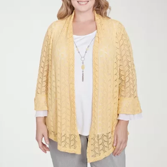 Alfred Dunner Dress Code Womens Plus Crew Neck 3/4 Sleeve Layered Top