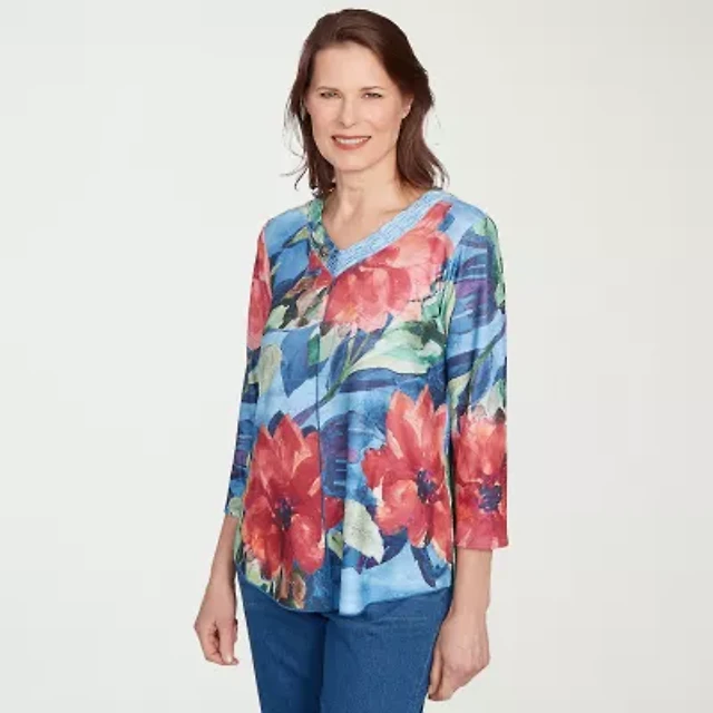 Alfred Dunner El Paso Womens V Neck 3/4 Sleeve T-Shirt