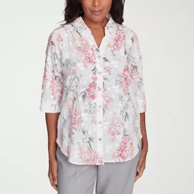 Alfred Dunner Estate Of Mind Womens 3/4 Sleeve Blouse