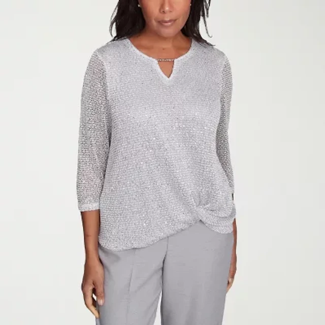 Alfred Dunner Estate Of Mind Womens 3/4 Sleeve Blouse