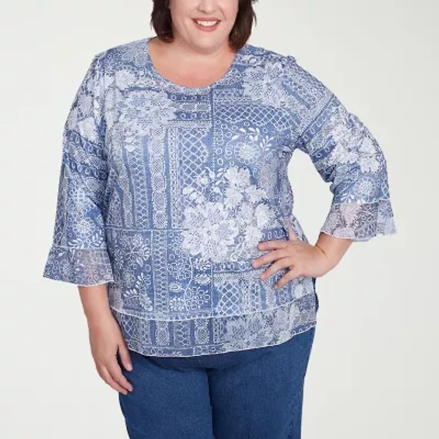 Alfred Dunner Classics Womens Plus Crew Neck 3/4 Sleeve T-Shirt