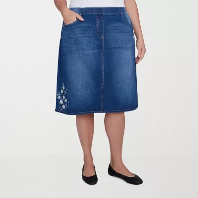 Alfred Dunner Flower Power Womens Stretch Fabric Denim Skirt-Plus