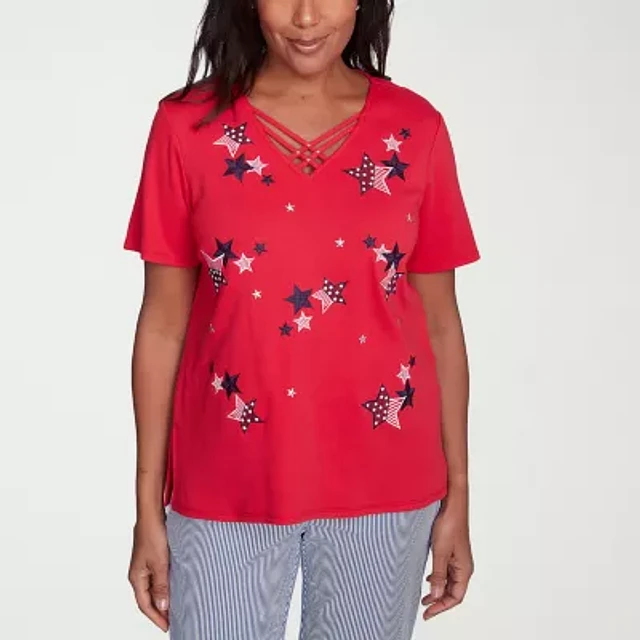 Alfred Dunner Land Of The Free Womens V Neck Short Sleeve T-Shirt
