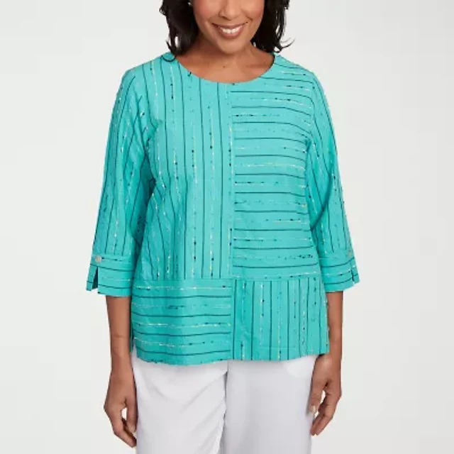 Alfred Dunner Nantucket Womens Crew Neck 3/4 Sleeve Blouse