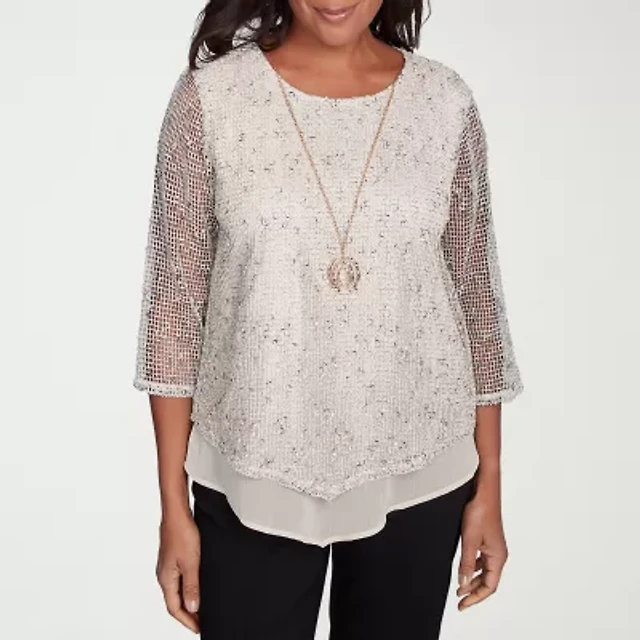 Alfred Dunner Natural Instinct Womens Crew Neck 3/4 Sleeve Blouse