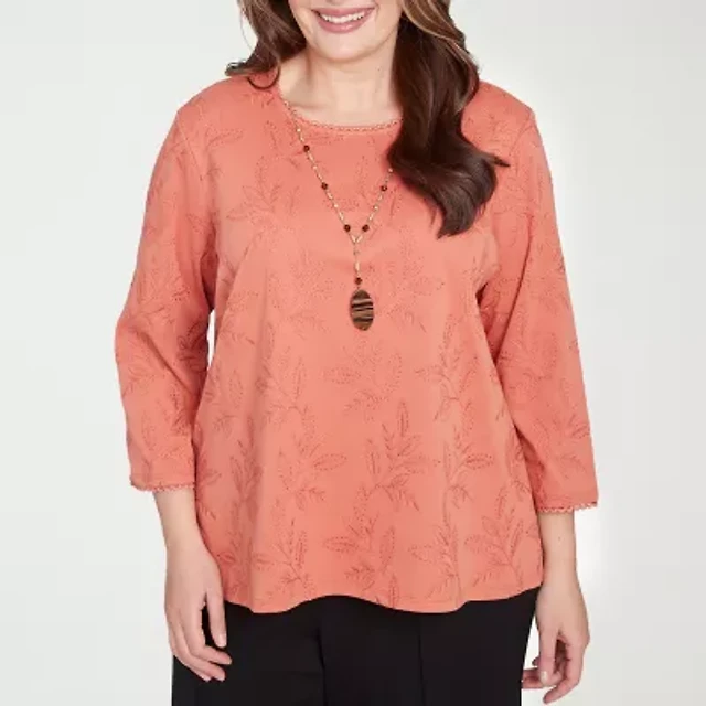 Alfred Dunner Natural Instinct Womens Plus Crew Neck 3/4 Sleeve T-Shirt