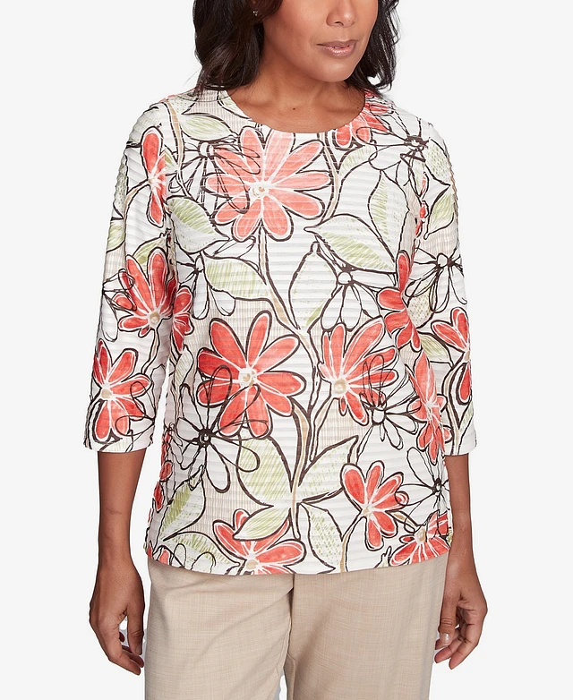 Alfred Dunner Petite Catalina Island Bold Island Floral Textured Top